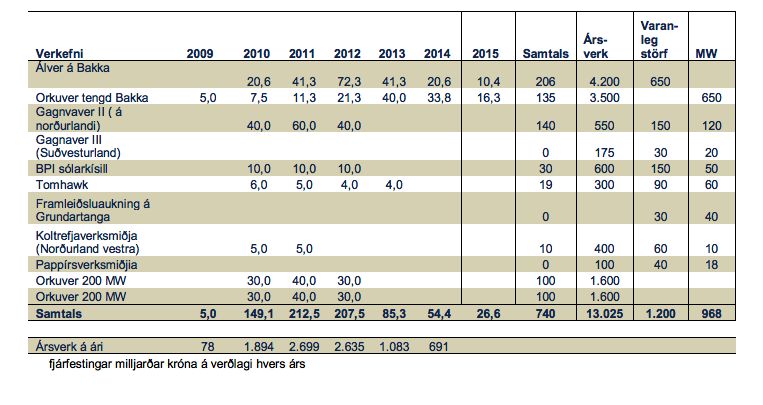 Andri Snær Magnason rithöfundur rakst nýlega á fimm ára gamla töflu sem Samtök atvinnulífsins höfðu tekið saman um virkjanir á Íslandi fram til 2015 og verkefnin sem nýta mætti orkuna til.