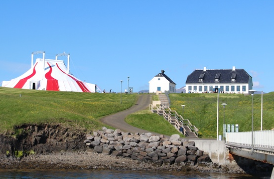 Hvaðanæva úr Reykjavík fór ekki framhjá neinum sem gaut augum út á sundin í vikunni að þar hafði verið slegið upp risastóru tjaldi vestan við Viðeyjarstofu. Þeir sem ég hitti voru á því að þetta væri líklega nýja sirkustjaldið, það er þesslegt og enginn hafði séð það áður.