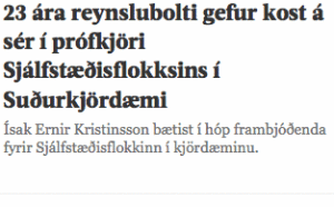 Nýlegt dæmi er frétt Vísis um 23 ára gamlan mann, sem býður sig fram í prófkjöri Sjálfstæðisflokksins í suðurkjördæmi.